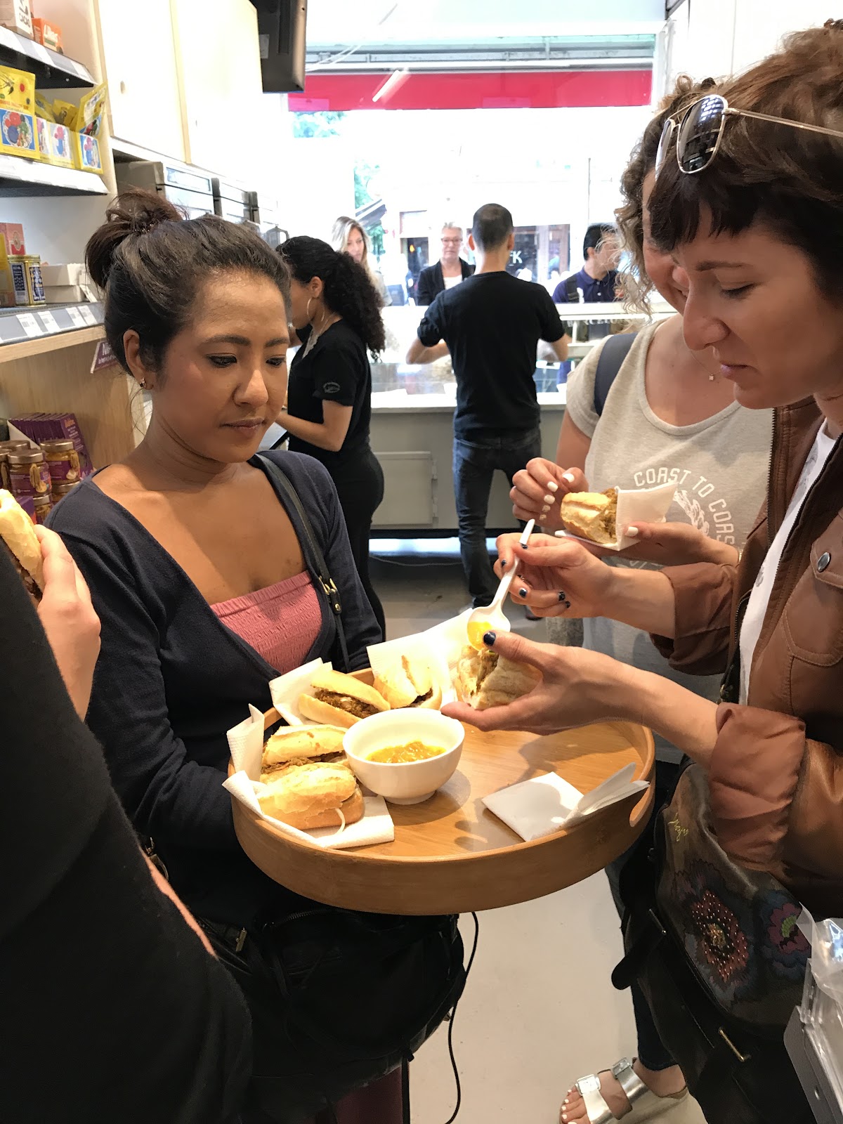 Our foodie tour with Hungry Birds was fantastic. We met our guide, a Singaporean named Charmaine outside Macdonald's in the suburbs and quickly moved next door to somewhere more authentically Dutch - which was in fact Indonesian as Dutch food is heavily influenced by their many past colonies. In common with most of the places Charmaine took us, I wouldn't have looked twice at it; but inside what a treasure trove of spices, cooked dishes and fresh vegetables and the longest greenest snake beans ever. Here we had little meaty bites dipped in different sambals (chutney/jam) of varying degrees of chilli heat.